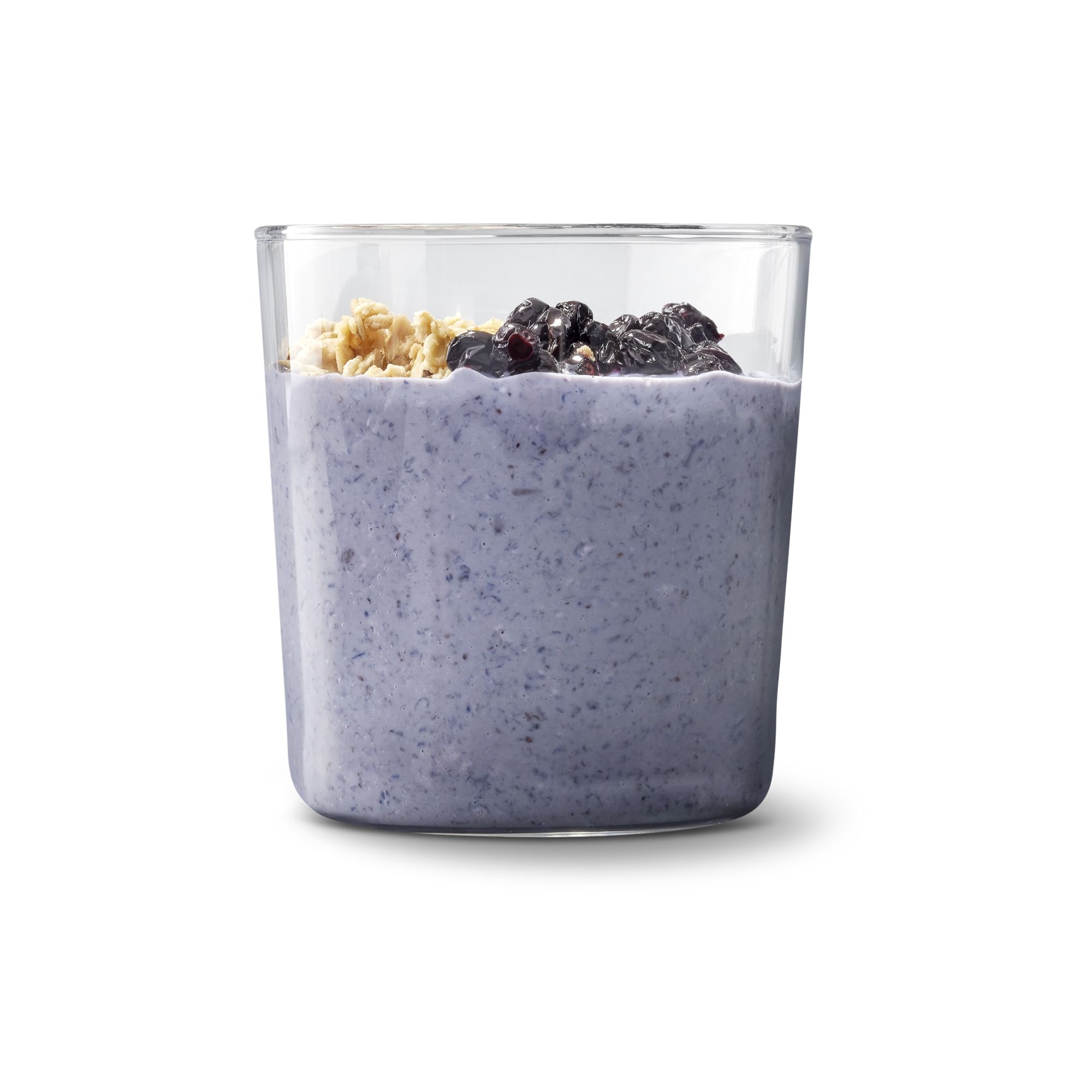 Overnight oats (lactose-free yoghurt (pasteurised MILK, MILK PROTEIN, vitamin D, starter culture), lactose-free quark (pasteurised MILK, starter culture), blueberry jam (blueberry 4.4%), sugar, water, modified corn starch, thickener (E418), acidity regulator (E330), flavouring, preservative (E202)), WHOLEGRAIN OAT FLAKES, blueberry purée 8%, lactose-free milk protein powder (MILK PROTEIN, BUTTERMILK, emulsifier (lecithin), vegetable oil, magnesium, lactase enzyme, vitamins (vitamin E, vitamin B6, folic acid, vitamin D))), blueberry (100% blueberry), crunchy granola (gluten-free wholegrain OAT flakes (EU), sugar, apple, coconut oil, olive oil, rice crisps, strawberry, coconut flakes, rice syrup, rice flour, sea salt).