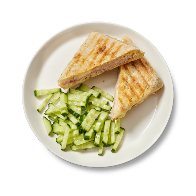 Focaccia (VEHNÄjauho, vesi, DURUM VEHNÄSUURIMO, auringonkukkaöljy, hiiva, suola, OHRAmallastiiviste, extra neitsytoliiviöljy, perunahiutale (peruna, kurkuma), dekstroosi, sokeri, jauhonparanne (E300).), kurkku, kinkkuleikkele (viljaporsaan kinkku (91 %), vesi, suola, stabilointiaineet (E 450, E 451), dekstroosi, hapettumisenestoaine E 301, säilöntäaine natriumnitriitti, savuaromi. Viljaporsaanlihan alkuperä Suomi), goudaJUUSTO (Pastöroitu MAITO, suola, hapate.), sulateJUUSTO (CHEDDARJUUSTO (80%, EU ja muu kuin EU), vesi, VOI, sulatesuolat (E331, E339), luontainen JUUSTOaromi, suola, säilöntäaine (E200), värit (E160a, E160c), stabilointiaine (E322 auringonkukkalesitiini).)