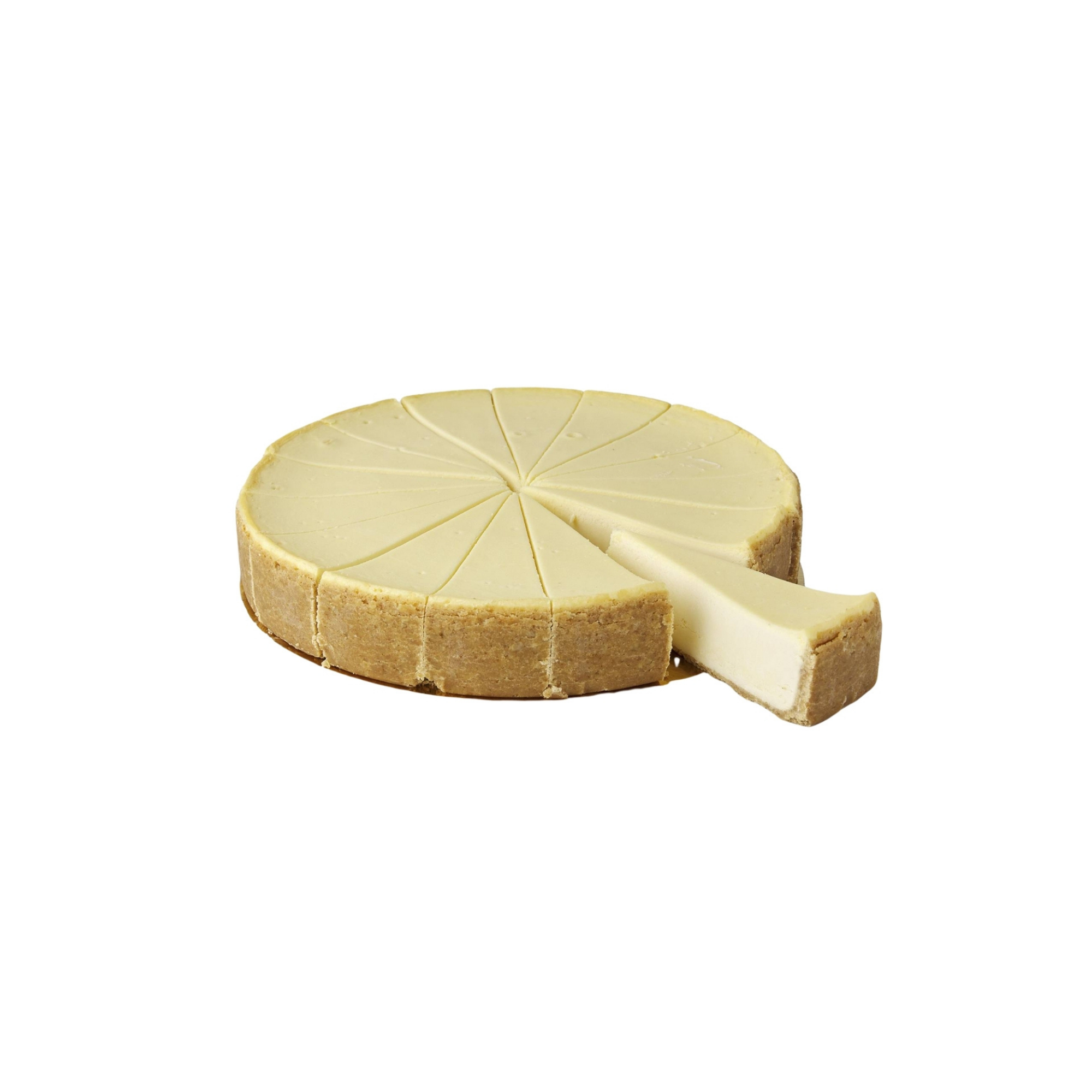 Rapean grahamkeksipohjan päällä kermainen ja täyteläinen vaniljajuustokakku