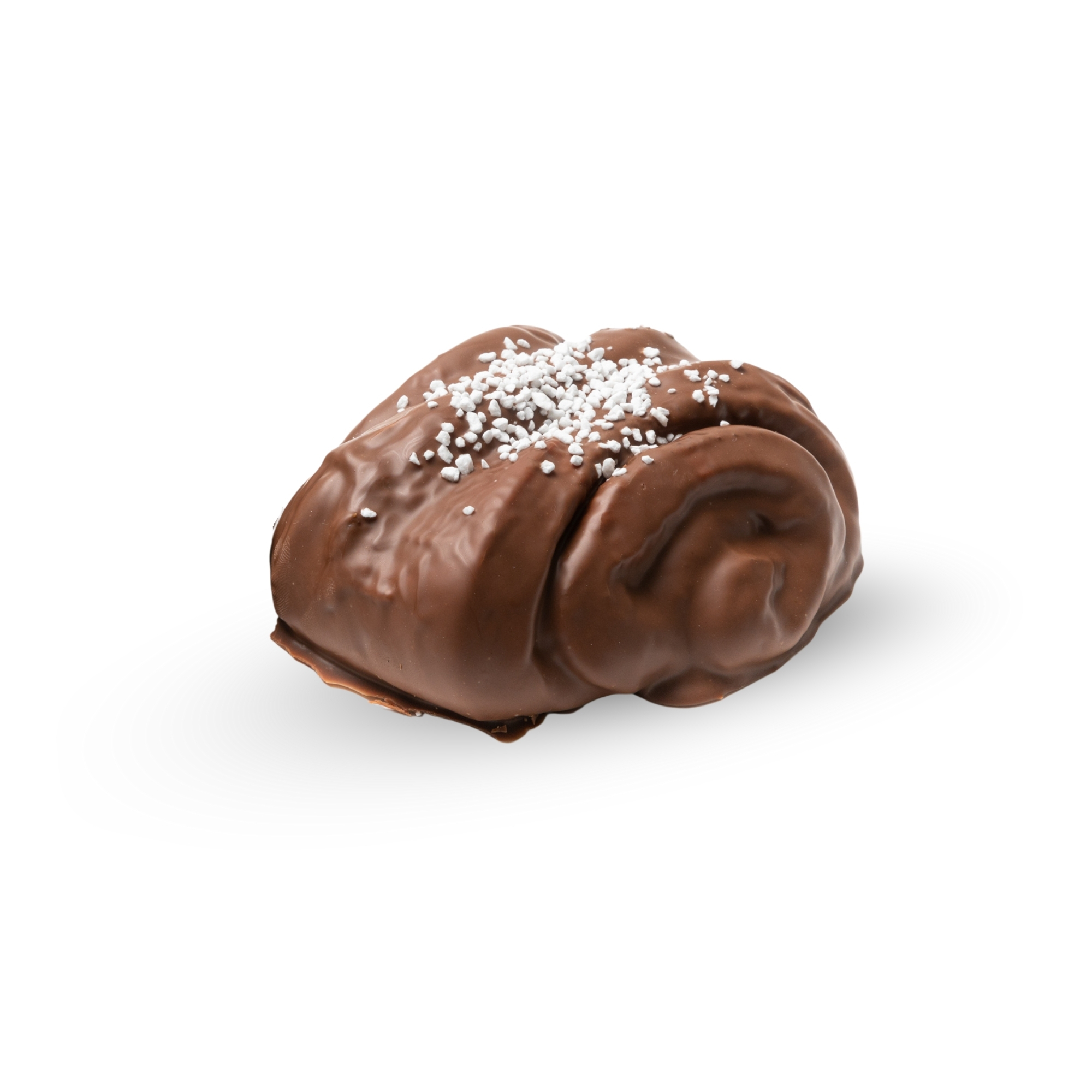 Perinteinen korvapuusti on kuorrutettu täyteläisellä maitosuklaalla. Pintaa koristaa raesokeri.
