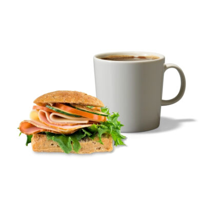 Aamiainen: Kahvi + 2 aamiaistuotetta