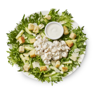 caesarkastike (Rypsiöljy (FIN), vesi, KANANMUNANKELTUAINEN, dijonSINAPPI (kaliumdiSULFIITTI), PARMESAN, ANJOVIS, sokeri, suola, SINAPINSIEMEN, worc ester (sis. SOIJA ja VEHNÄJAUHO), sitruunamehu, sipuli, valkosipuli, muunnettu maissitärkkelys, valkopippuri, happamuudensäätöaineet (E260, E330), säilöntäaineet (E202, E211), stabilointiaineet (E415, E412).)