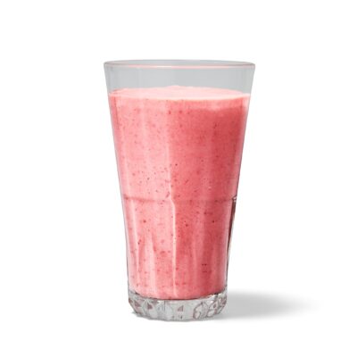 Raikas smoothie vadelmalla, persikalla sekä Oddlygood® -vadelma-kauragurttilla.