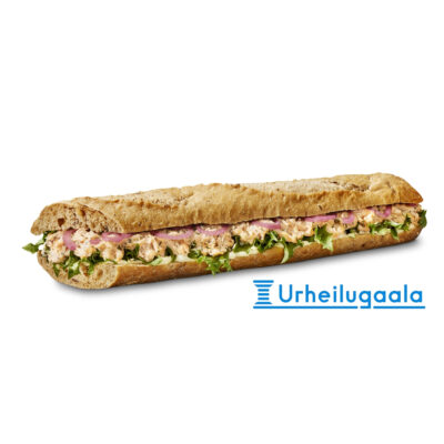 Urheilugaalan virallinen kisakatsomopatonki! Rapeassa 6-viljan patongissa lämminsavukirjolohitahnaa (Suomi/Ruotsi/Norja), Picnic-remouladekastiketta, pikkelöityä...