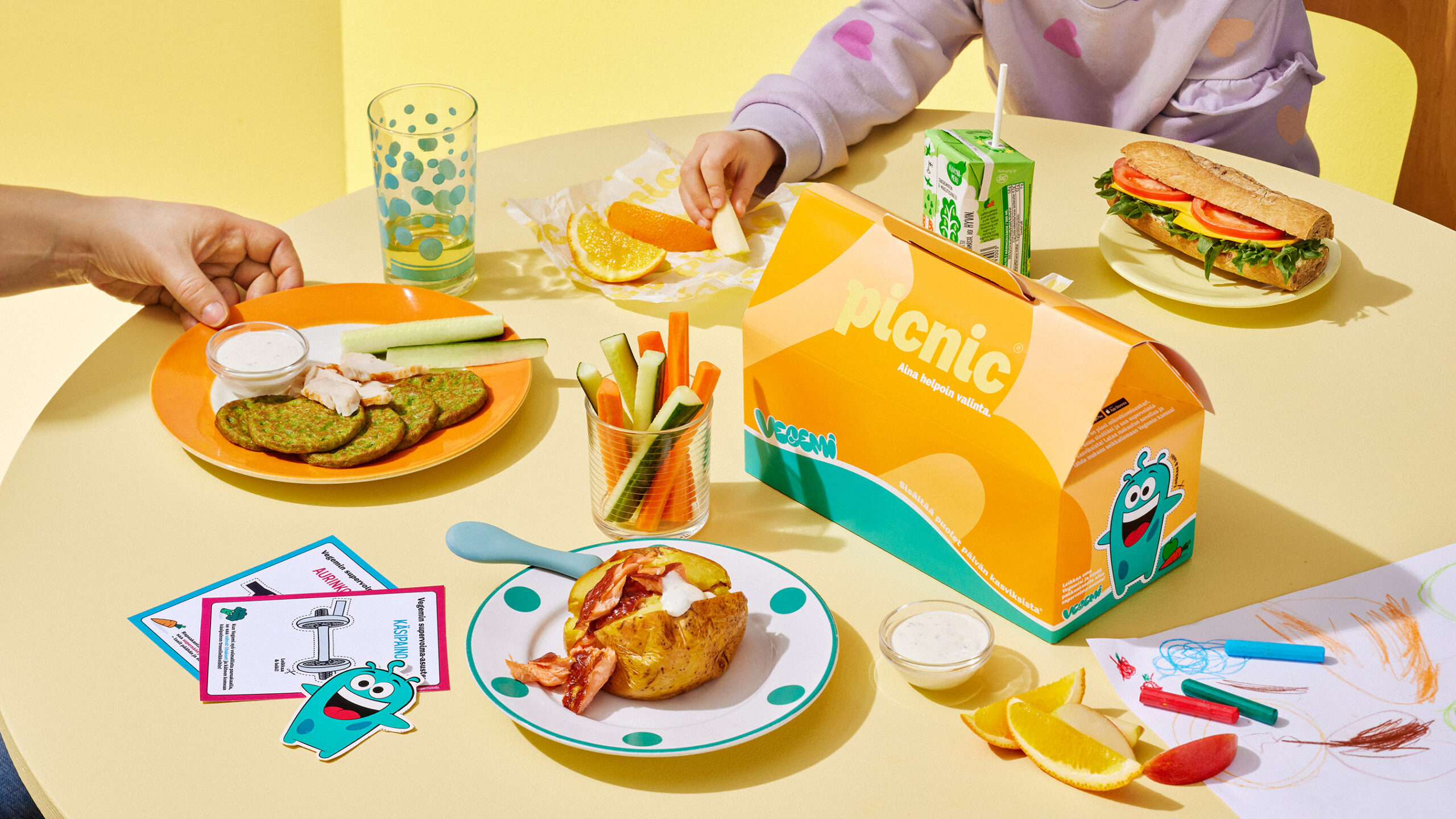 – Vegemi auttaa tekemään kasviksista lapselle kiinnostavia ja motivoivia. Picnicin kanssa tehty yhteistyö tuo ruokakasvatuksen luontevaksi osaksi perheiden arkea ja ravintolakokemusta – juuri sinne, missä ruokailun terveellisyyttä on tarkoituksenmukaista tukea. Perheiden arki on usein kiireistä, ja olemme tyytyväisiä, että terveyttä tukevia valintoja voi tehdä helposti myös ravintoloissa, Emilia Järvinen Vegemiltä toteaa.
